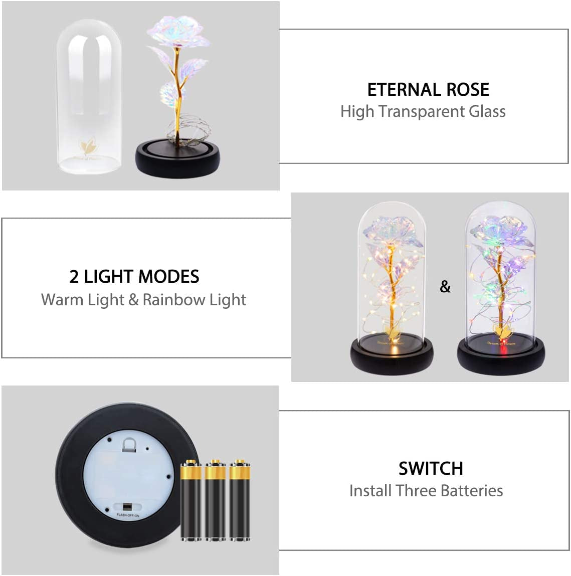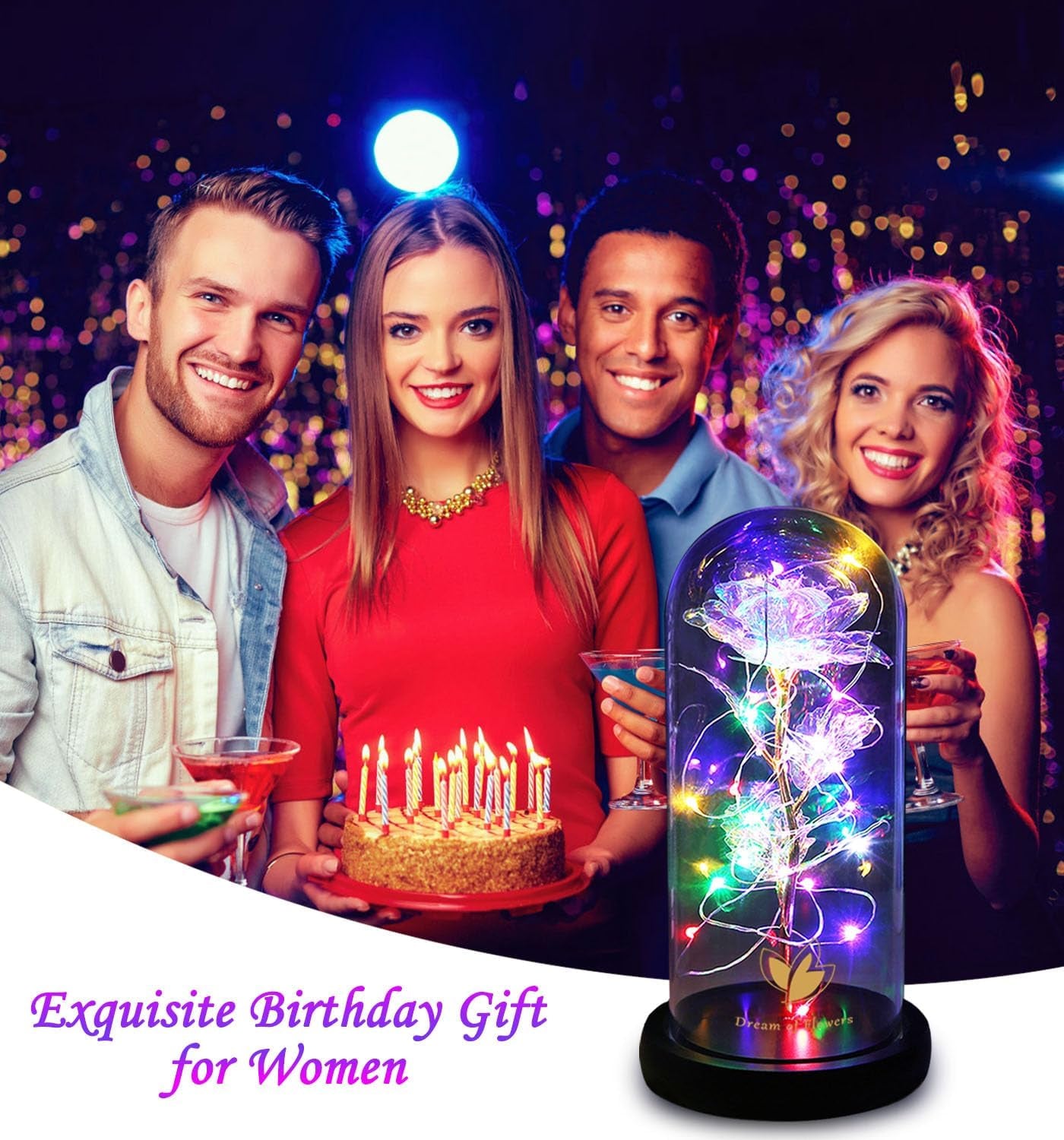 - ❤️Galaxy Rose Flower with 2 Lighting Modes(Warm Light Mode &Colorful Light Mode),Rose Gift Ideas -Sweet Rose Flower Gifts for Her: Xmas gifts for women,Christmas gifts for her Christmas presents for mom, gifts for women.Light up rose Gifts: The Rose is wrapped around an LED Strip light, Powered by 3 AAA power(not included),led strip light bright warm white lighting & Colorful Light Mode.LED light up rose can use in daytime and nighttime for home room gifts or create romantic gifts for her,Led glass dome rose is symbol womens rose gifts of appreciation,best wishes,love and romantics,Light Up Rose Flower Gifts for Women Wife Girlfriend,Great friend gifts for women,Mom gifts for her,women gifts